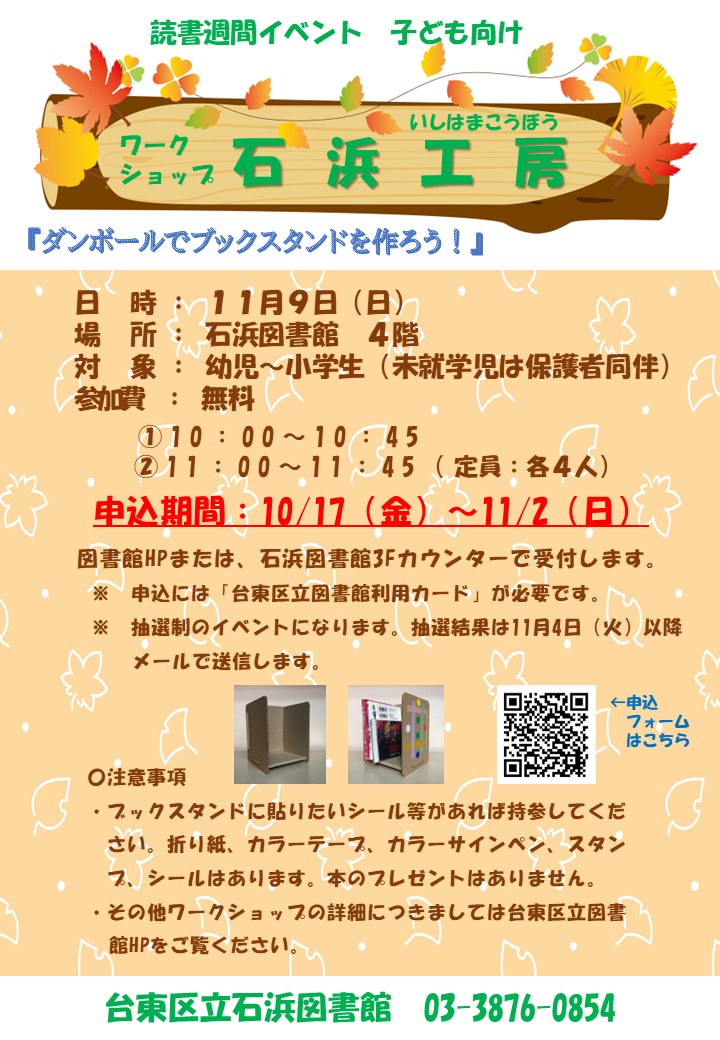 <読書週間イベント こども向け>ワークショップ石浜工房【石浜図書館】
